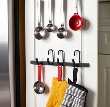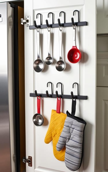Install Hooks or Racks: Hang measuring spoons, oven mitts, or small tools.