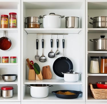 Cooking Zone: Store pots, pans, and cooking utensils adjacent to the stove.