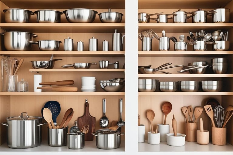Use Shelf Risers: Double the storage capacity of cabinets by adding risers, allowing you to stack items efficiently.